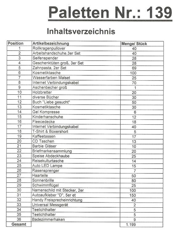 Inhoud pallet: 1.199 St. diverse artikelen !