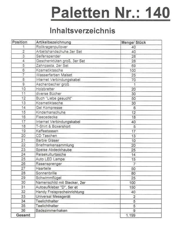 Inhoud pallet: 1.199 St. diverse artikelen !
