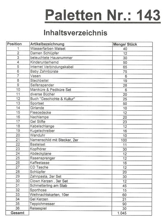 Inhoud pallet: 1.045 St. diverse artikelen !