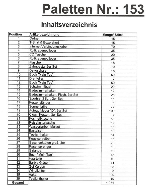 Inhoud pallet: 1.051 St. diverse artikelen !