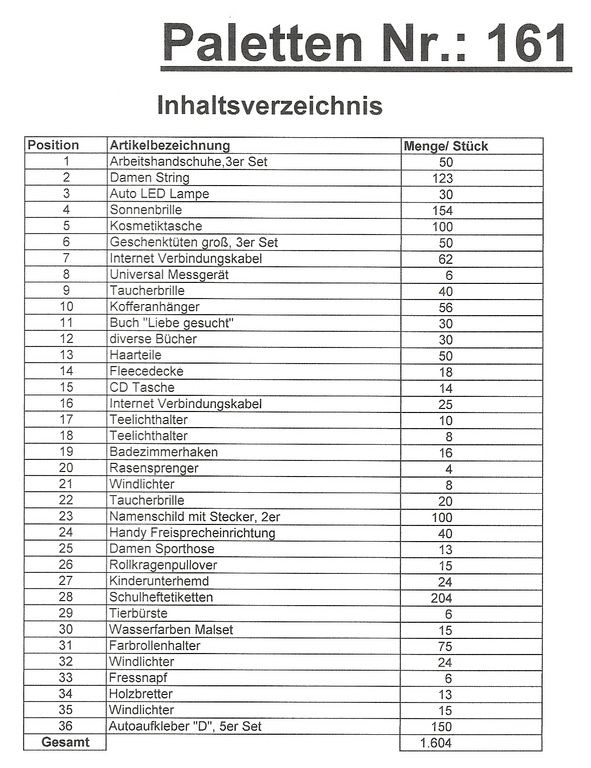 Inhoud pallet: 1.604 St. diverse artikelen !