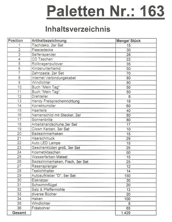Inhoud pallet: 1.429 St. diverse artikelen !