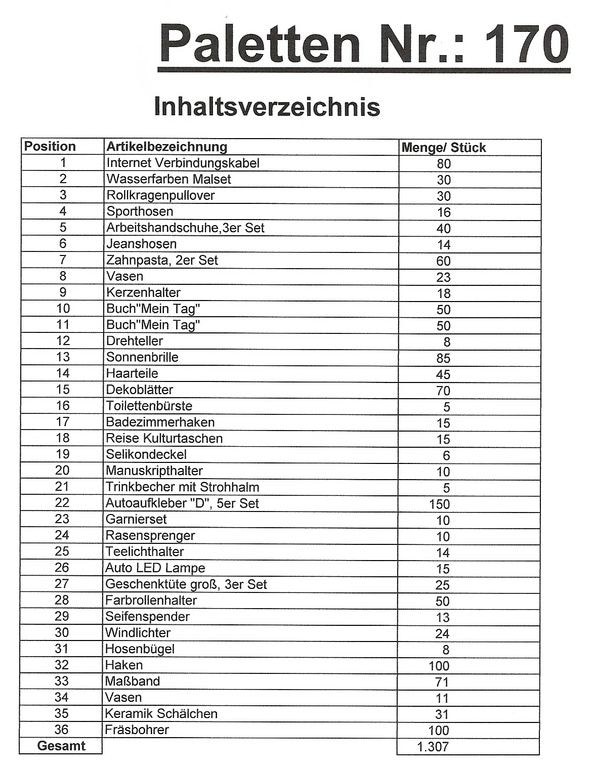 Inhoud pallet: 1.307 St. diverse artikelen !