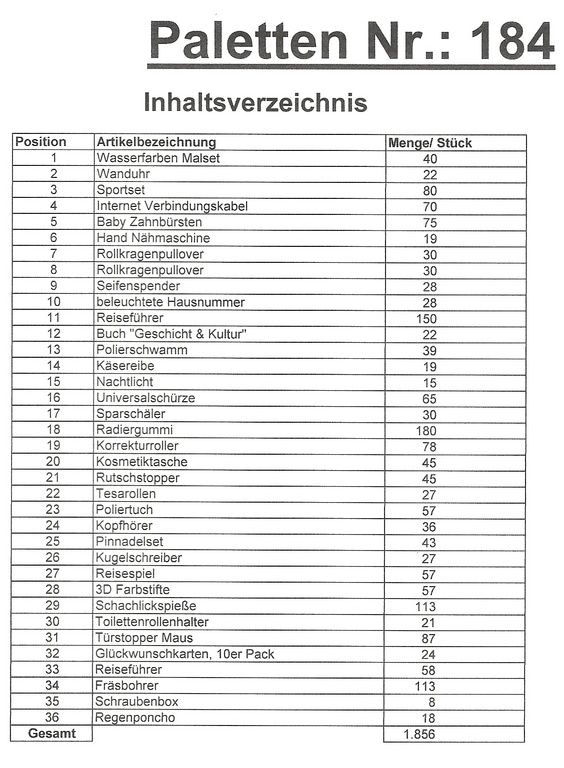 Inhoud pallet: 1.856 St. diverse artikelen !