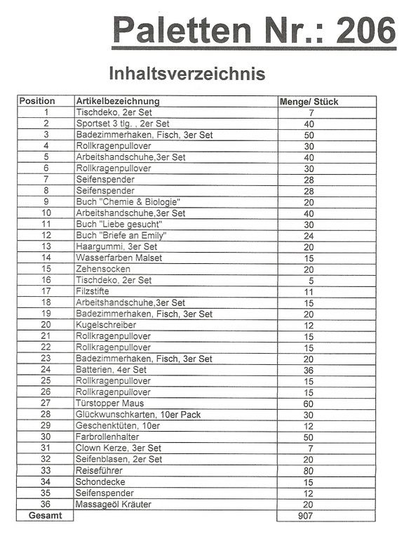 Inhoud pallet: 907 St. diverse artikelen !