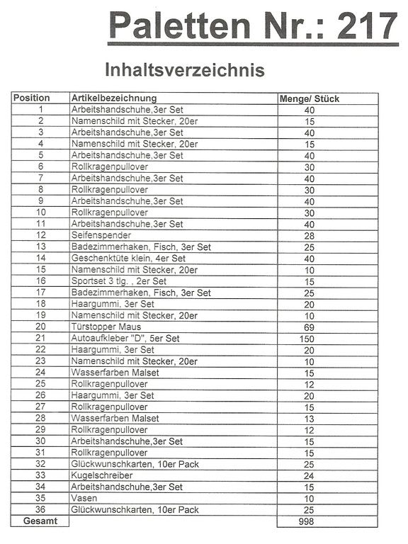 Inhoud pallet: 998 St. diverse artikelen !