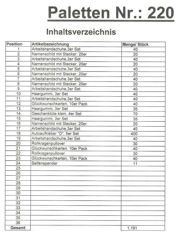 Inhoud pallet: 1.191 St. diverse artikelen !