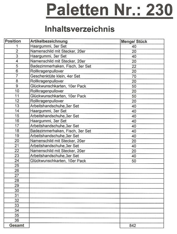 Inhoud pallet: 842 St. diverse artikelen !