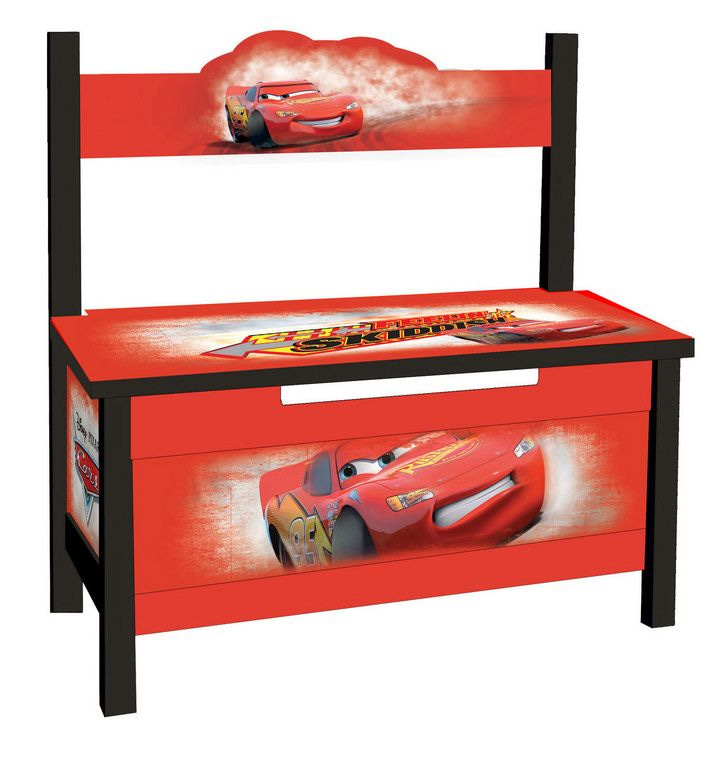 Op dit stevige houten Cars bankje kun je niet alleen heel goed zitten, maar je kunt er ook nog eens spellen, speelgoed en andere dingen in opbergen.