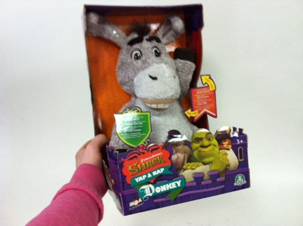 De ptatende en bewegende donkey van Shrek.