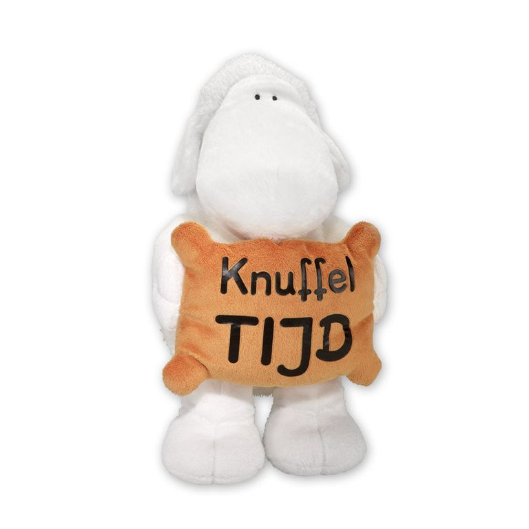 Pluche knuffel shaap met kussen met tekst Knuffel Tijd.