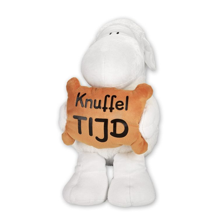 Pluche knuffel shaap met kussen met tekst Knuffel Tijd.