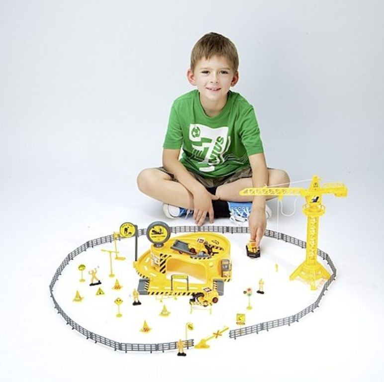 Compleet met een kraan, 3 voertuigen,