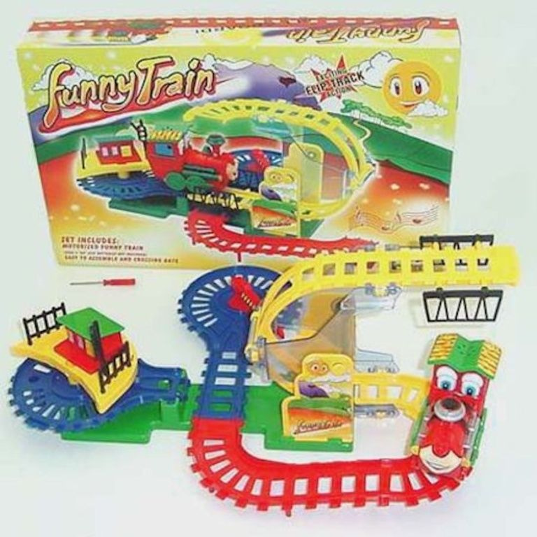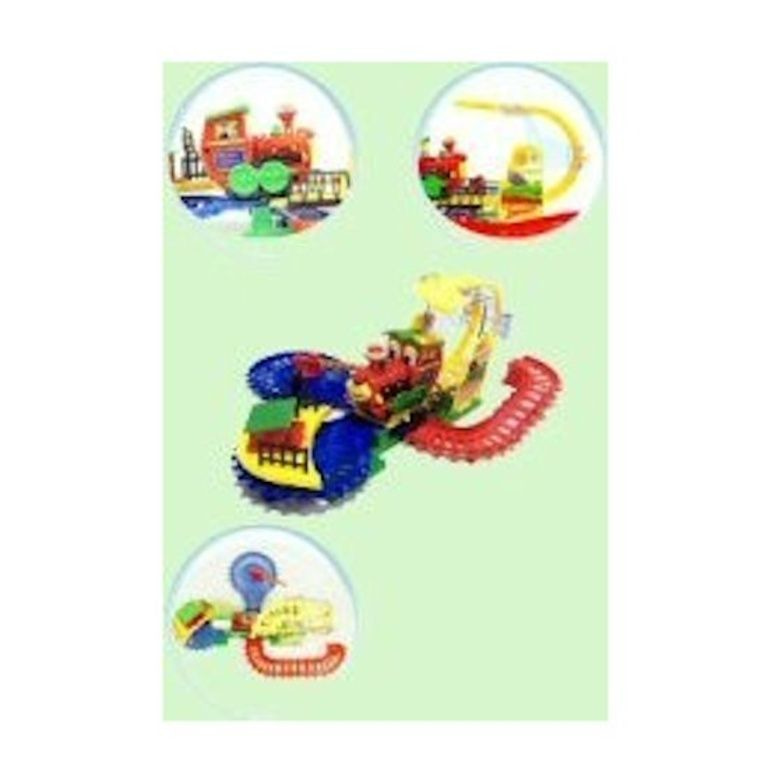 Deze trein blijft alsmaar rondjes rijden, als hij over de brug gaat... kiept de brug mee. Voorzien van geluid.
