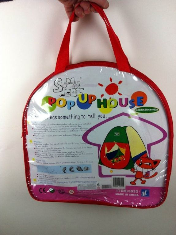 Afmetingen tent opgezet: 106 x 106 x 103 Cm.