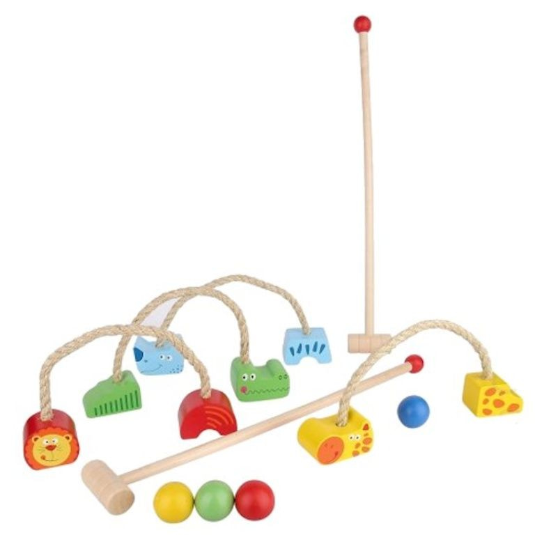Vrolijke houten Croquet Speelset, voorzien van vrolijke jungle dieren.