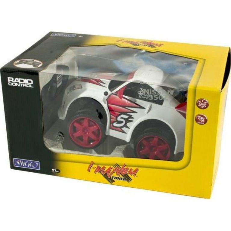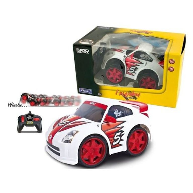 Nikko Wheelie Bros Nissan Radiografische auto. Deze stoere auto kan echte Wheelies maken! Radiografische frequentie van 40 MHz, met volledige rijfuncties. Inclusief batterijen (1x 9V en 4x 1,5V AA batterijen). Verpakt in een windowbox.