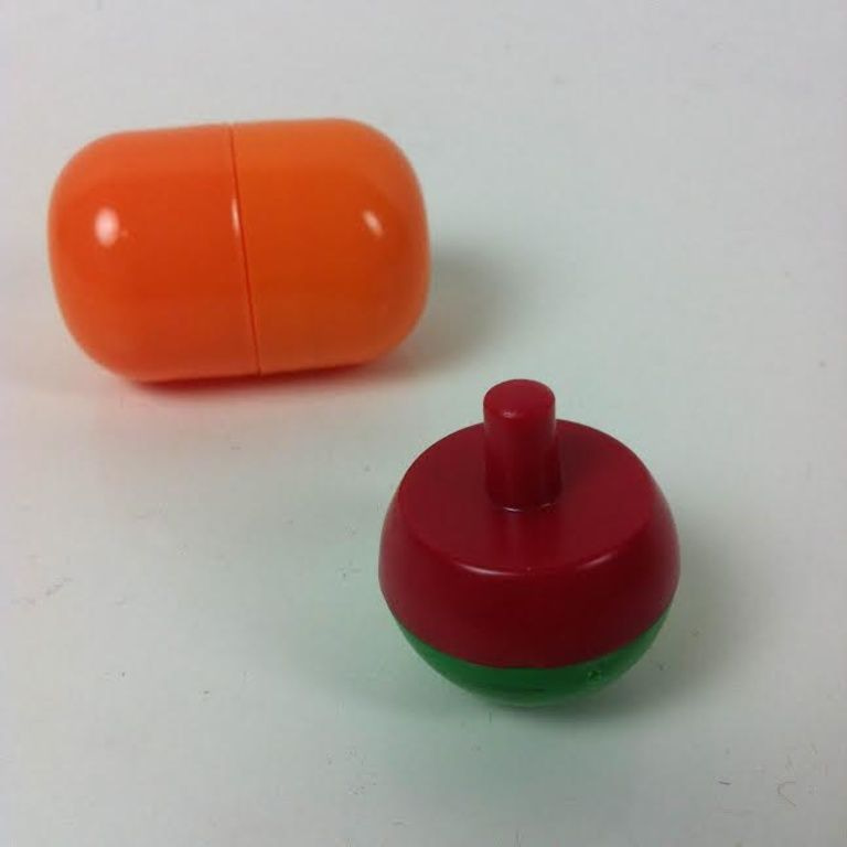 Voorzien van zelfbouw speelgoed in de vorm van een Tol.
