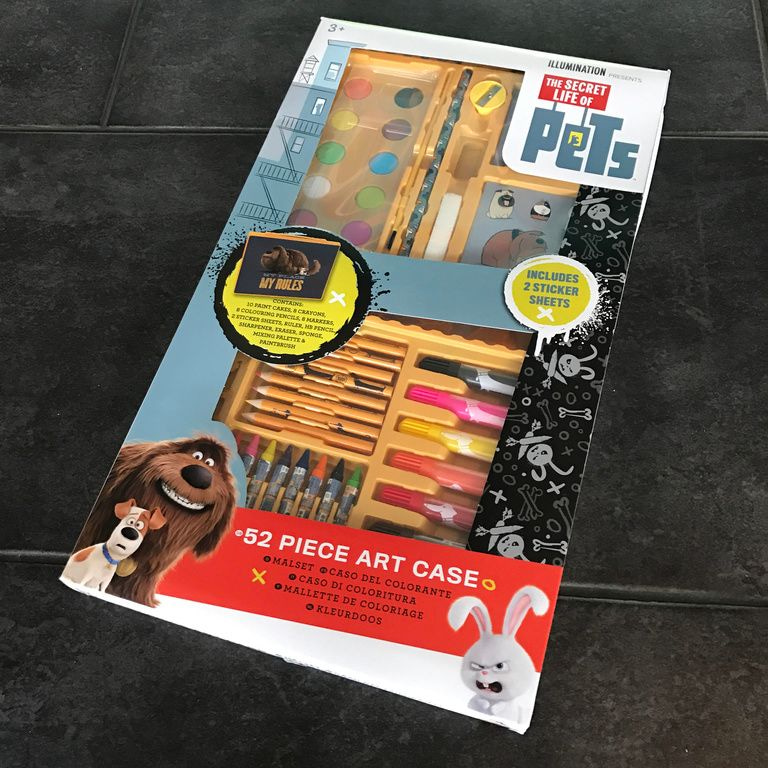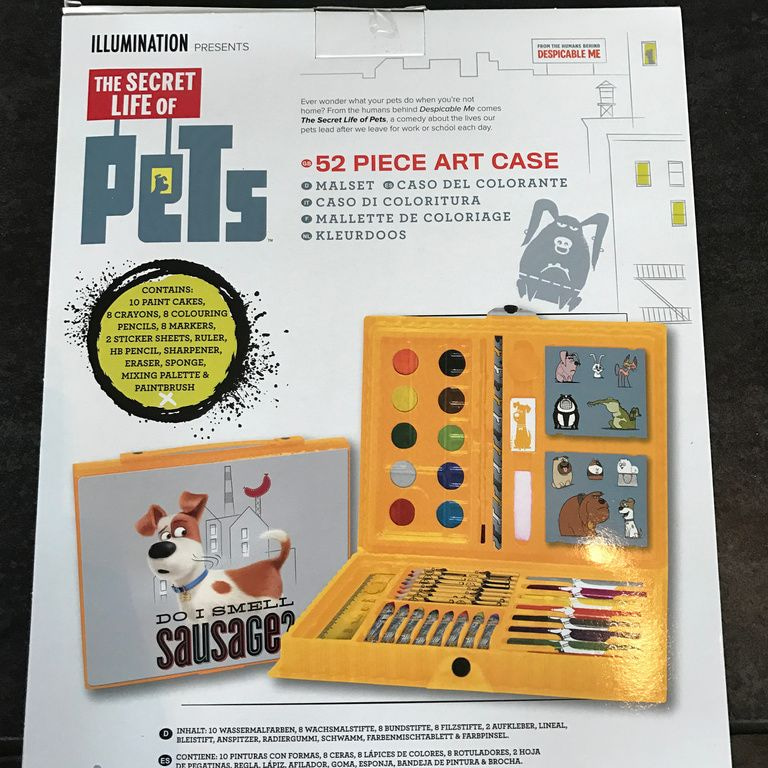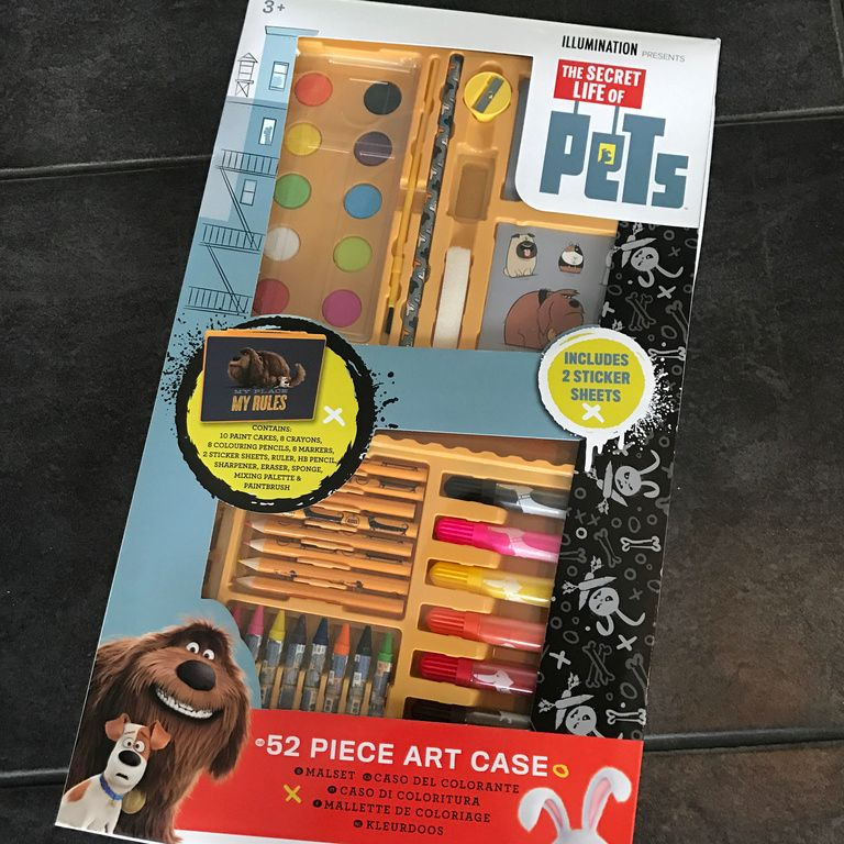 Deze kleurdoos bestaat uit 52 delen, potloden, viltstiften, krijtjes, stiften, puntenslijper en stickers, etc. Verpakt in een opbergkoffer.